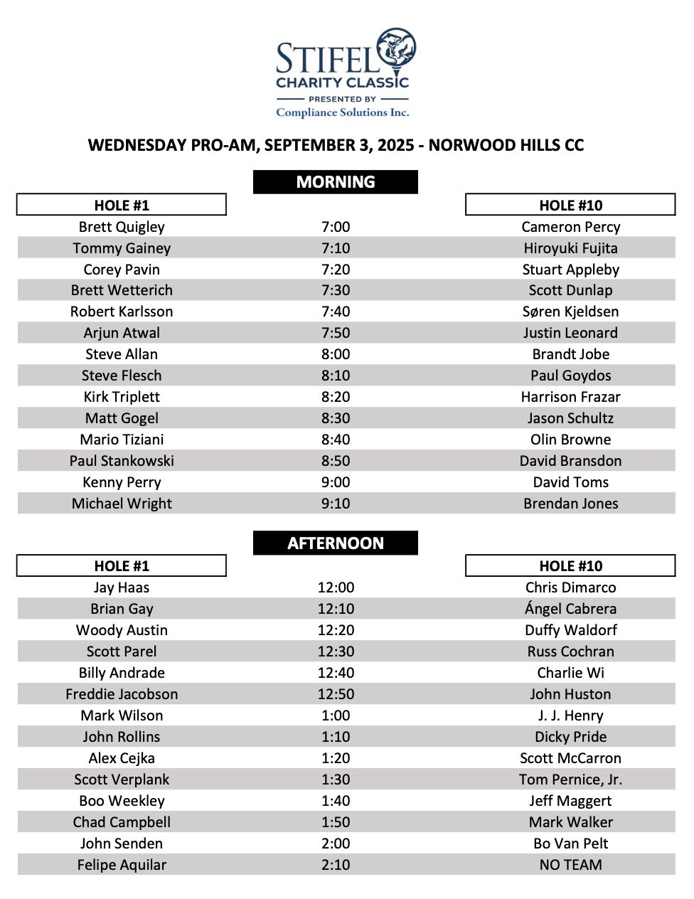 Special Tournament Announcement (6:15 p.m.) – Inside the Norwood Hills Ballroom, Stifel executives, PGA TOUR Champions officials, and Governor Mike Kehoe will unveil important news about the future of the Stifel Charity Classic.