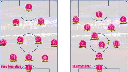 Speaking of that formation, Damet’s been using a striker (9) up top with two attackers (10s) sitting behind. With the current 10s being Hartel on the left and Sang Bin Jeong on the right (with Mykhi Joyner right behind on the depth chat) each player has a distinct role.